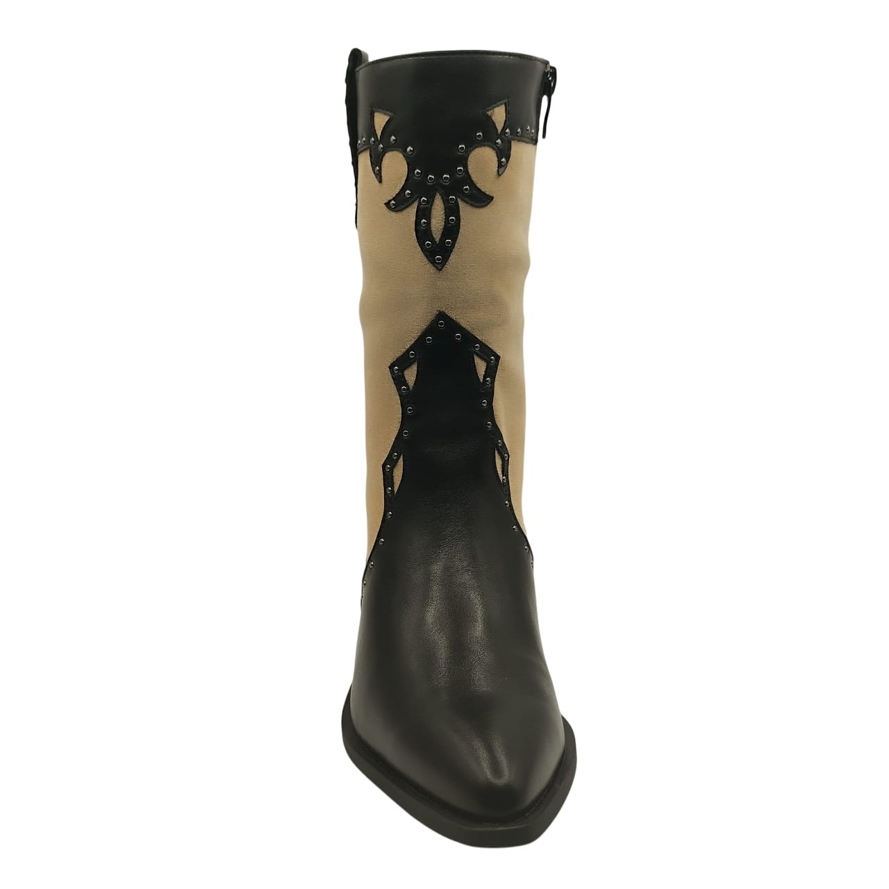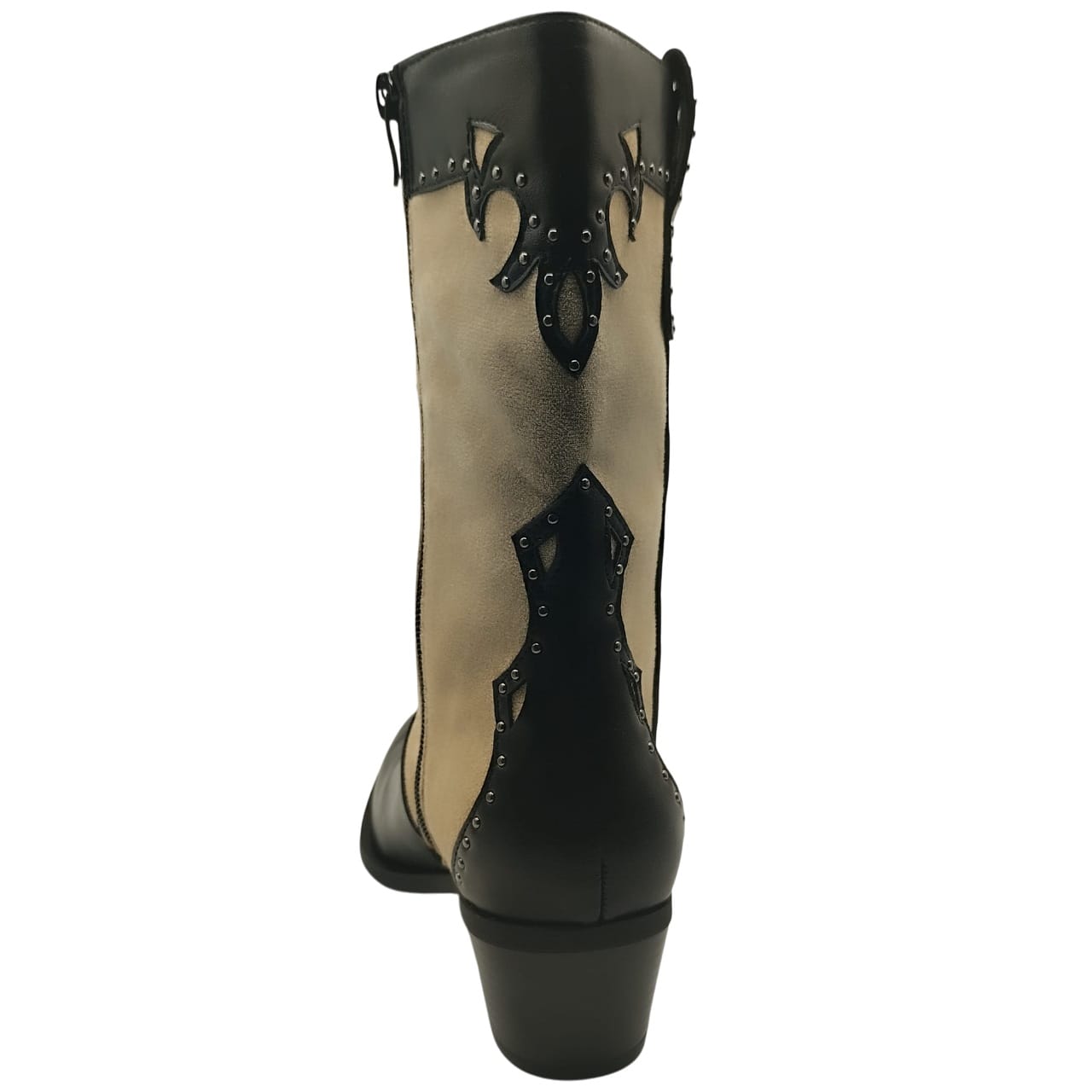 La Bota Cowboy Niko Amore 20142 combina estilo y confort en un diseño inspirado en la moda western. Fabricada en cuero sintético beige, destaca por su acabado elegante y su práctica cremallera lateral que facilita el calce. Su silueta moderna y detalles artesanales aportan un toque distintivo y sofisticado. Ideal para mujeres o niños que buscan un look auténtico con personalidad. Niko Amore redefine la esencia del cowboy chic en cada paso.