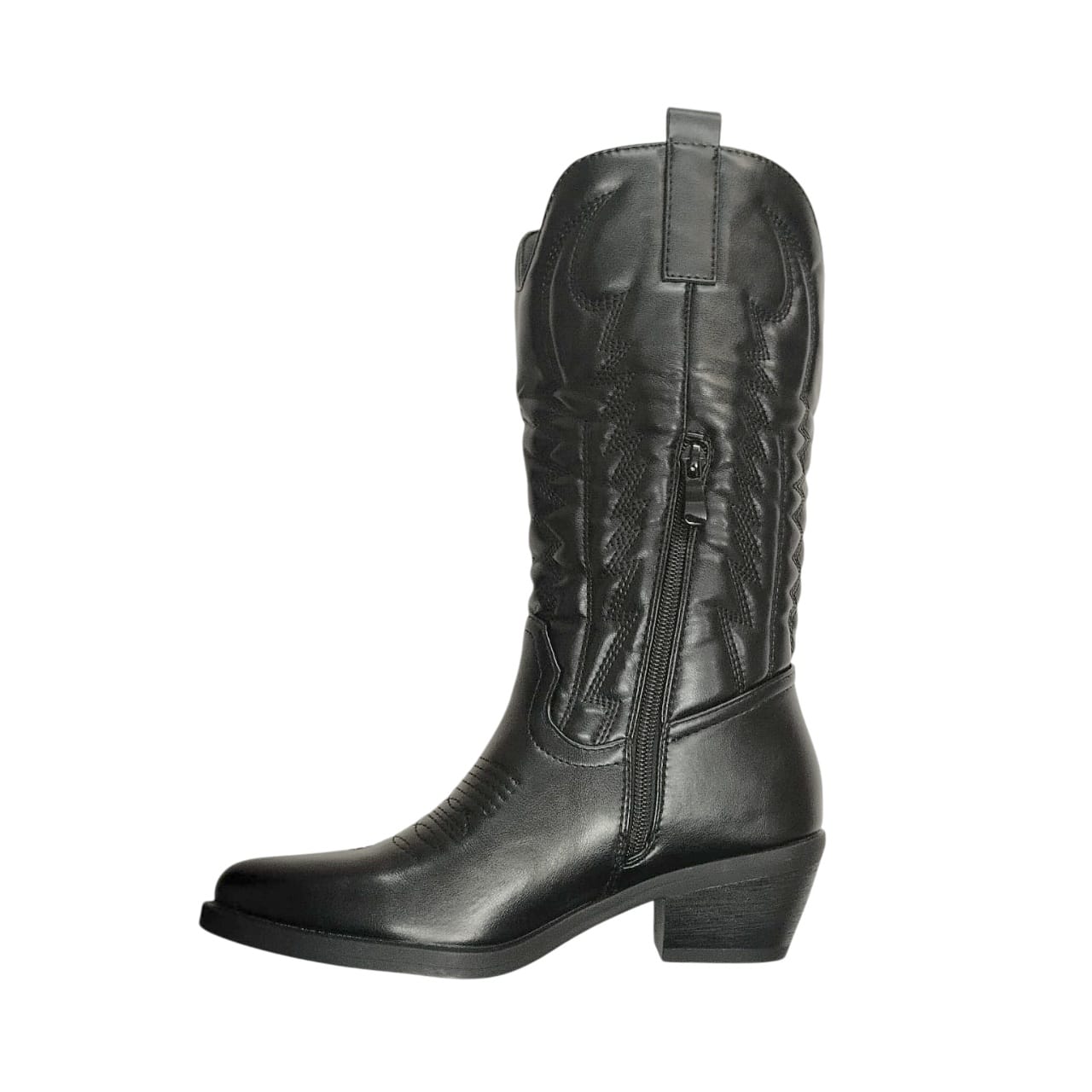 Combinan carácter y elegancia en un diseño atemporal. Fabricadas en cuero sintético negro, destacan por su acabado impecable y su silueta estilizada. Su cremallera lateral facilita el calce, brindando comodidad y ajuste perfecto en cada paso. Ideales para añadir un toque sofisticado y moderno a tus looks diarios o de noche. Andarina: calidad, estilo y confianza para mujeres con personalidad.
