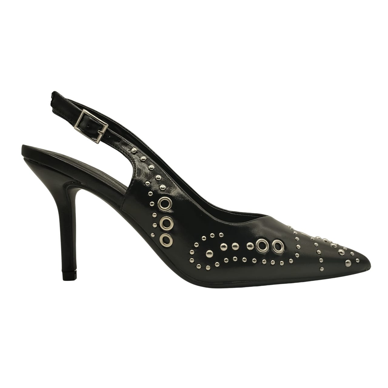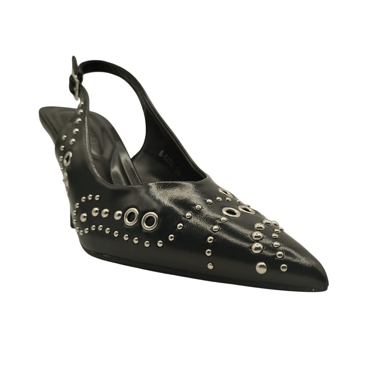 Los Stilettos Destalonados con Tacón de 9 cm Buonarotti B-5474DH combinan elegancia y versatilidad en un diseño sofisticado. Confeccionados en piel sintética negra, ofrecen un acabado refinado y duradero. Su diseño destalonado sin cierre permite un calce cómodo y práctico. El tacón de aguja realza la silueta, ideal para looks casuales o de fiesta. Buonarotti transforma cada paso en un toque de estilo y distinción.
