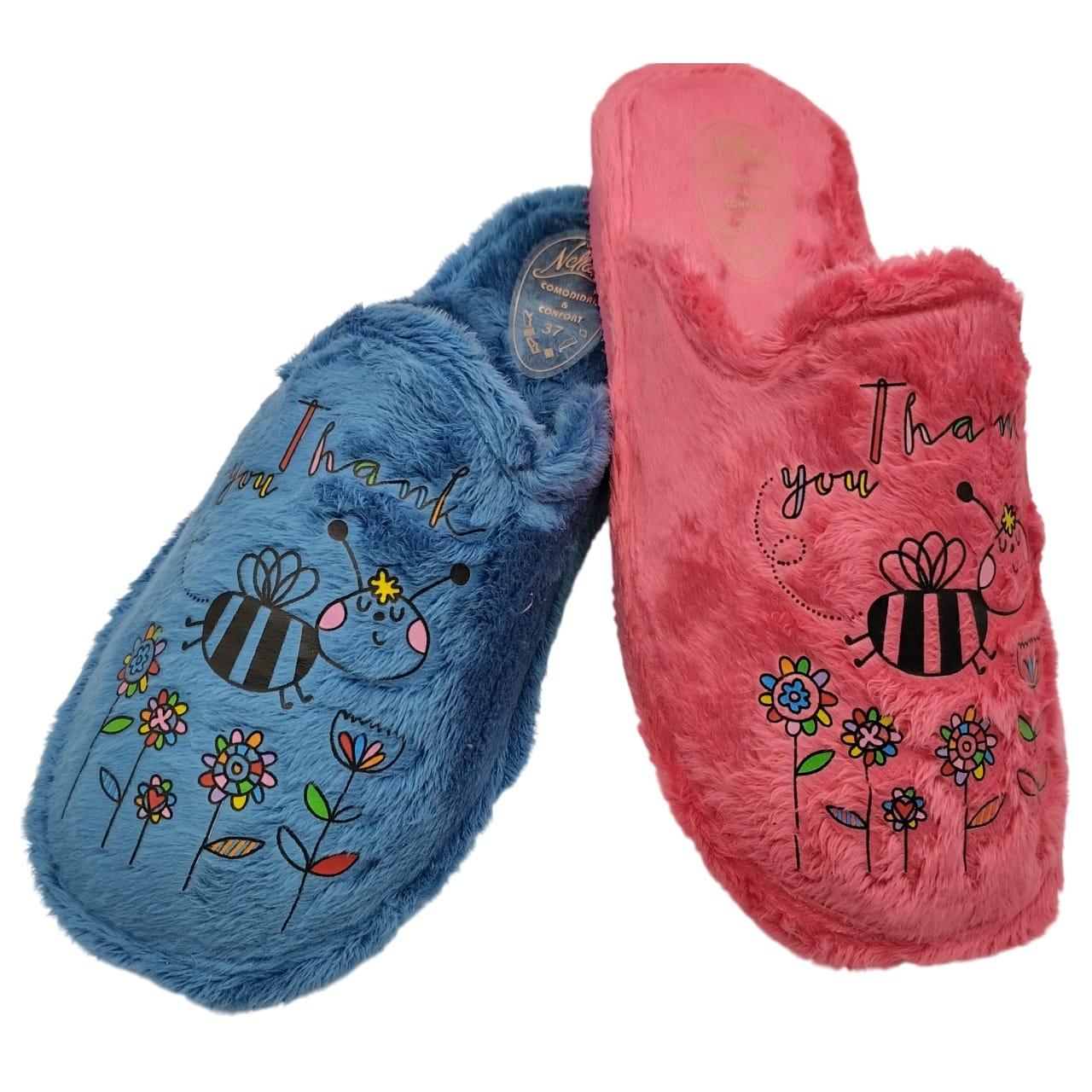 La Zapatilla de Casa Chilena Nellakis 483 ofrece calidez y suavidad para mujer y niño en colores Ducados y Fucsia. Confeccionada en textil afelpado, brinda una sensación acogedora y confortable en cada paso. Su suela EVA ligera aporta aislamiento y flexibilidad para un uso seguro en interiores. Un diseño adorable con detalles de abejitas y flores que añade un toque encantador. El calzado perfecto para regalar comodidad y estilo en el hogar.
