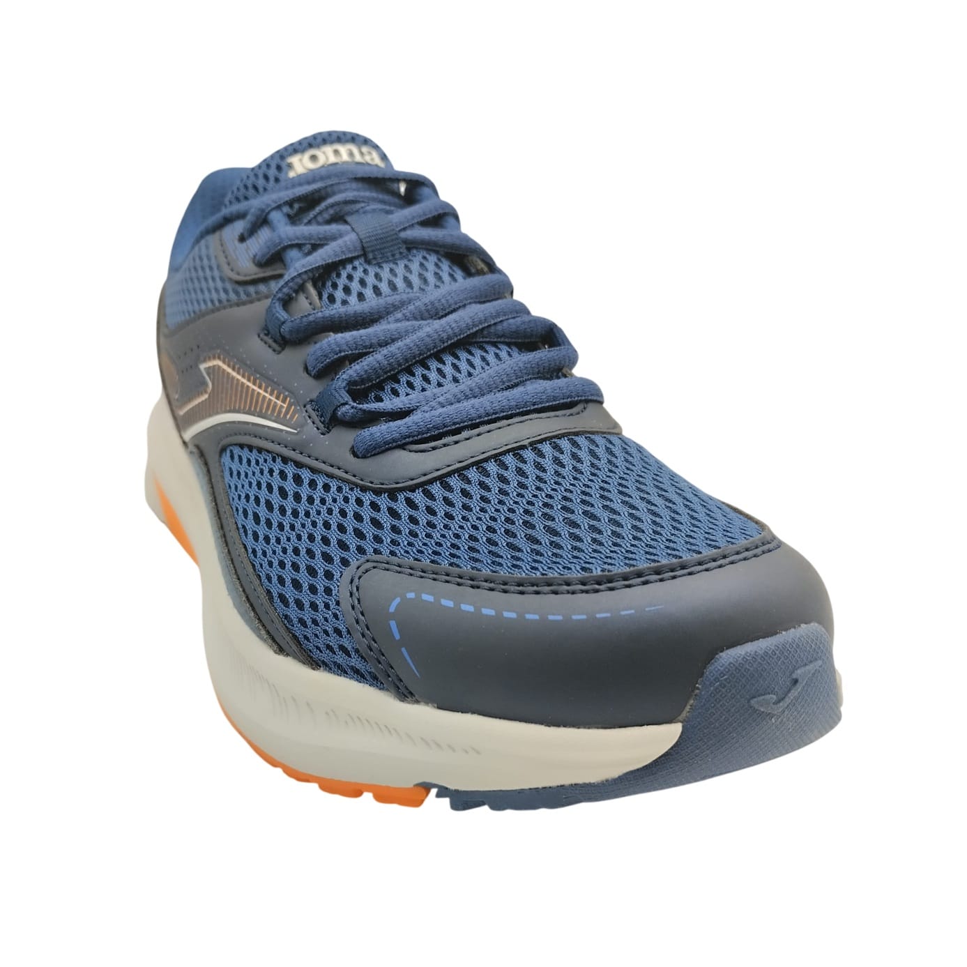 La Zapatilla deportiva Joma Vitaly Running 2633 para hombre combina rendimiento y estilo en color marino con detalles en naranja. Confeccionada en textil de alta calidad, ofrece ligereza y una óptima transpirabilidad. Su cierre con cordones, junto a la talonera acolchada y plantilla con memoria, garantiza un ajuste cómodo. La suela de goma con estabilizadores y diseño antideslizante proporciona seguridad y estabilidad en cada paso. Un calzado ideal para quienes buscan confort, durabilidad y estilo deportivo en su día a día.
